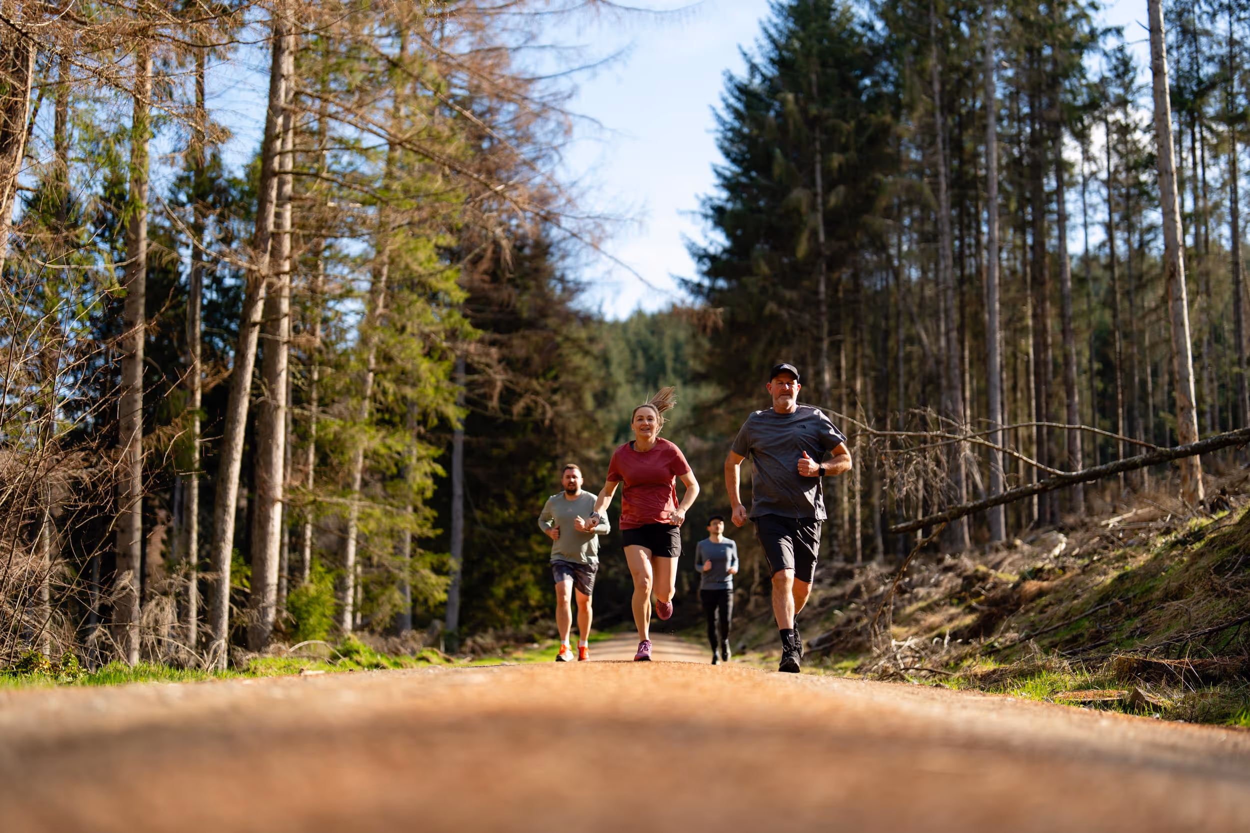 Set in Banchory on Royal Deeside, explorr unfolds on the edge of the Cairngorms National Park. Runners move through the pine-scented trails of Scolty Woodland, while riders roll out across vast open landscapes, quiet roads and endless gravel. Big skies, river air and proper Scottish terrain come as standard.