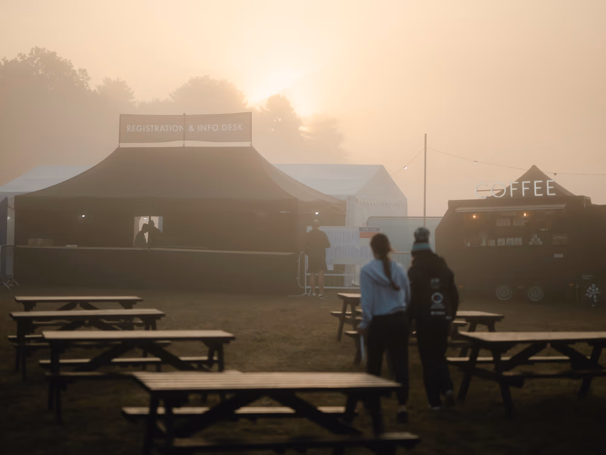 The free-to-access heart of explorr, a buzzing hub of riders, runners, families and locals gathering between races and into the evening.